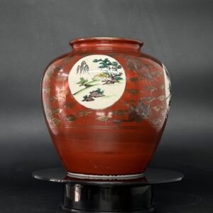 Bình hoa Kutani vẽ tay tích xưa hội bàn đào